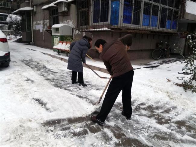 1月4日一大早,后勤保障部,兵分三路分別對南區家屬院、北區家屬和院建國路辦公區的積雪進行清掃,大家利用鐵鍬、掃帚等工具將積雪鏟走,清理出道路,在積雪較厚的地方撒除雪劑。在大家的帶動下我院退休職工李克銀、高賢峰、李君、婁季功,職工家屬李赟、賈愛榮等也紛紛加入掃雪隊伍。盡管天氣寒冷,但大家團結協作,干勁十足,經過3個多小時的共同努力,家屬區路面上的積雪、碎冰已被清掃干凈,道路暢通無阻,來往職工家屬紛紛稱贊,并表示感謝。