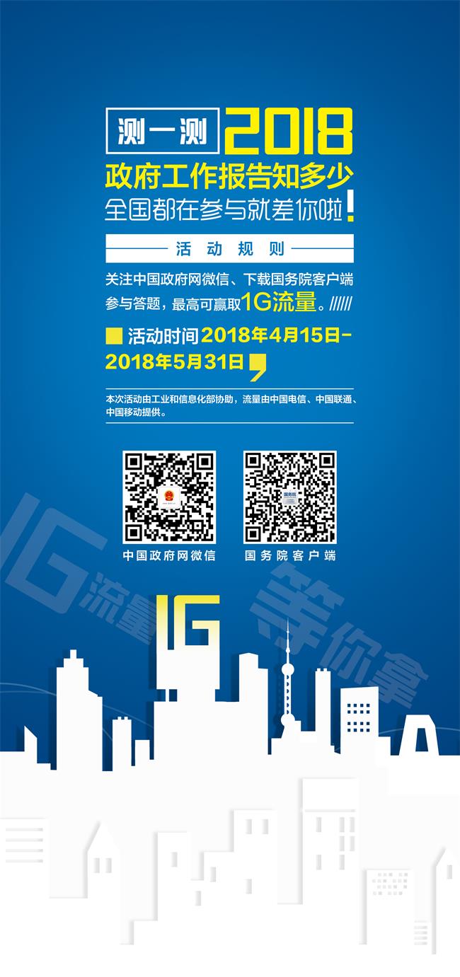 活動參加方式:通過院網(wǎng)站、院微信公眾號、院宣傳海報等方式關(guān)注中國政府網(wǎng)微信、下載國務(wù)院客戶端參與答題。答對題目可獲贈手機流量。(可訪問中國政府網(wǎng)或者活動海報獲取連接)