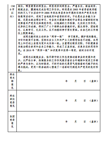 優秀共產黨員推薦和審批表