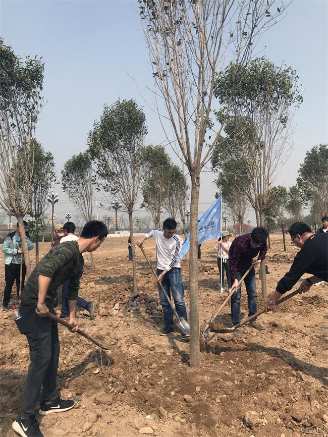 藍天白云下,明媚春光中,鮮紅的共青團旗迎風招展。在簡短的啟動儀式后,團員們集體奔赴指定種植區域,認真聽取園林技術人員的指導,有序領取鋤頭、鐵鍬等工具,投入到植樹活動當中。參加植樹的團員們相互協作,揮鍬鏟土、扶苗填坑、平土澆水,道道工序都做得規范認真,整個勞動場面繁忙而有序。在彩旗飄揚的植樹現場,呈現一片熱火朝天的勞動景象。