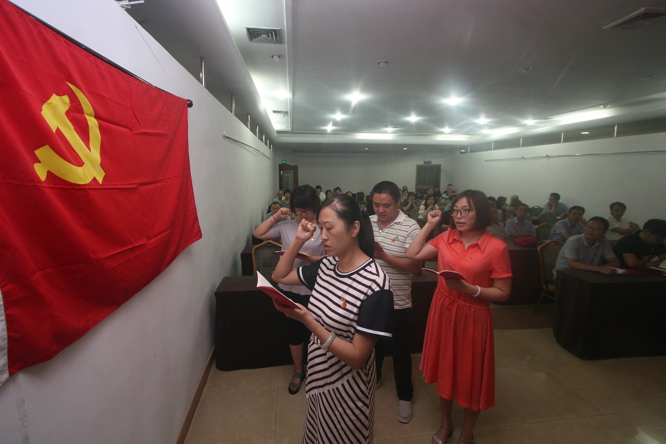 接著,舉行新黨員入黨宣誓儀式。黨委委員劉春莉同志帶領新黨員宣誓,他們舉起右手,握緊拳頭,莊嚴宣誓,“我志愿加入中國共產黨,擁護黨的綱領,遵守黨的章程……”錚錚誓詞響徹會議室,全體黨員也重溫了入黨誓詞。